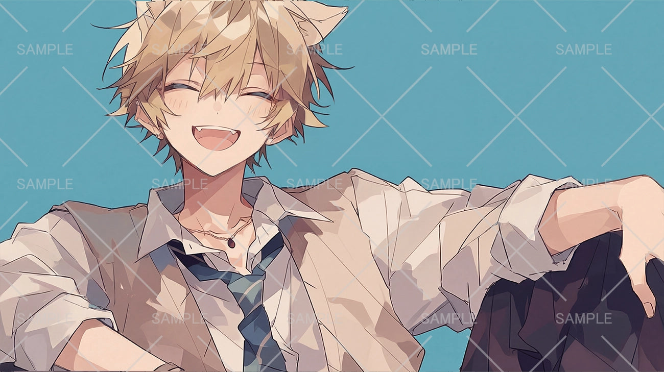 金髪猫耳ヤンキー高校生イラスト(表情差分あり)
