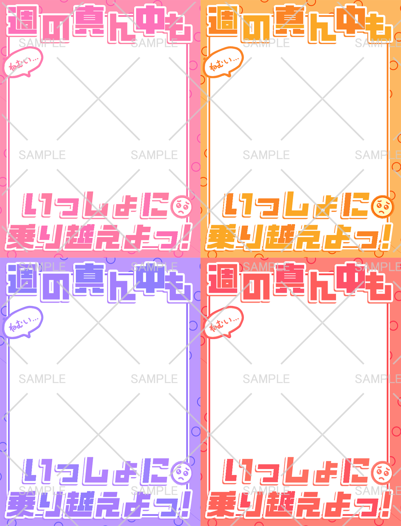 おはV素材「週の真ん中も一緒に乗り越えよっ!」フレーム4種セット