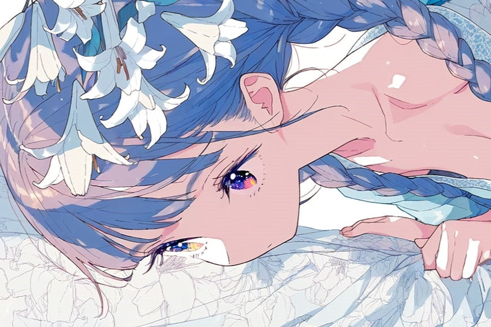花に囲まれた銀髪美少女イラスト